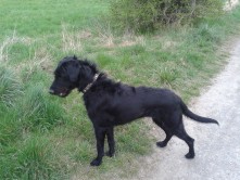 Dit is mijn Finja, een zwarte Labradoodle hond. Ze is nu 5 jaar oud en ik heb het aan mijn vriendin en Anifit consulente Anja Beyers te danken dat ze al 3 jaar Anifit eet. Zij liet me voor het eerst zien waarom haar snuithaar oranje was geworden en dat ik haar veel te weinig had gevoerd van wat ik eerder in de supermarkt had gekocht. Ze woog toen 17 kg, wat ik heel normaal vond omdat ik ook goed op mijn figuur let. Haar poep was echter enorm en dat irriteerde me, want ik moest veel in zakken doen. Mijn vriendin liet me Finja's problemen zien. Haar heupen staken een beetje uit, haar ribben zaten als gegoten in haar lichaam en er zat een gat aan de basis van haar staart. Ik schaamde me heel erg, maar was heel blij dat daar nu verandering in zou komen. Vandaag weegt ze een verbazingwekkende 22 kg en is ze nog steeds slank. Poep is gemakkelijker geworden om in zakken te doen. Er is geen enkel mankement te zien.